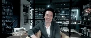 書斎をバックにしたスタイルからの伊泉先生